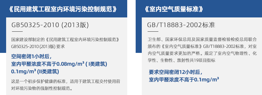 室內(nèi)空氣檢測分為兩種標準,一種是《室內(nèi)空氣質(zhì)量標準》GB/T 18883-2002,一種是《民用建筑工程室內(nèi)環(huán)境污染控制規(guī)范》GB 50325-2010(2013版)。